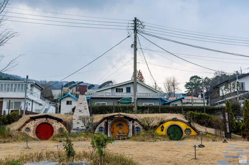 그 옆에는 영화 속에서 튀어나온 듯한 호빗가가 자리하고 있습니다. 작은 창문과 둥근 문으로 이루어진 집들은 동화 속 장면을 연상케 했습니다. 이곳은 아이들과 함께 방문하기에도 좋을 듯했습니다.