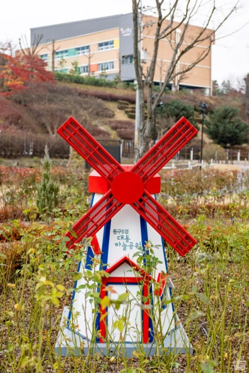 또한, 대동하늘공원의 풍차 모형을 축소해 놓은 작은 구조물도 놓칠 수 없는 포인트입니다. 공원을 따라 걷는 내내 이어지는 이 독특한 풍경들은 자연과 인공의 조화 속에서 특별한 경험을 선사했습니다.