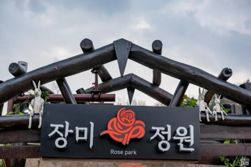 얼마 전 새롭게 조성된 장미정원도 눈에 들어왔습니다. 철 지난 노란 장미는 애틋하게 피어 있었고, 중세풍 아치 구조물에는 화사한 인조 장미꽃들이 걸려 있어 이국적인 매력을 더했습니다.