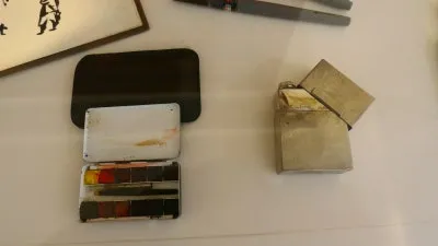 쓰시던 라이터와 물감통, 휴대용 가방까지