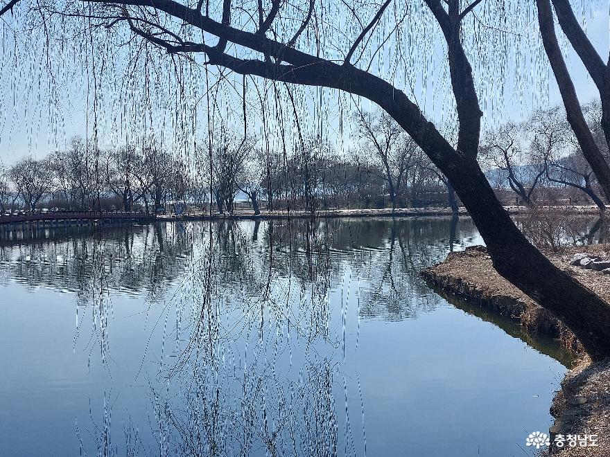 궁남지의 갈대는 또 다른 숲이 되었다. 움직이는 풍경화의 포인트는 따로 있다. 물오리다. 느긋하게 헤엄치다가 물 밖에서 제 몸을 털고는 무심히 어느 곳을 응시하는 물오리. 오리는 물에 비친 자기 모습을 바라보며 한가로움을 더한다. 능수버들의 머리카락처럼 늘어진 잔가지마다에는 살짝 물이 올랐다. 겉으로 내보이지 않아도 나 마다의 숨찬 움직임들이 조용히 전해지는 듯하다.
