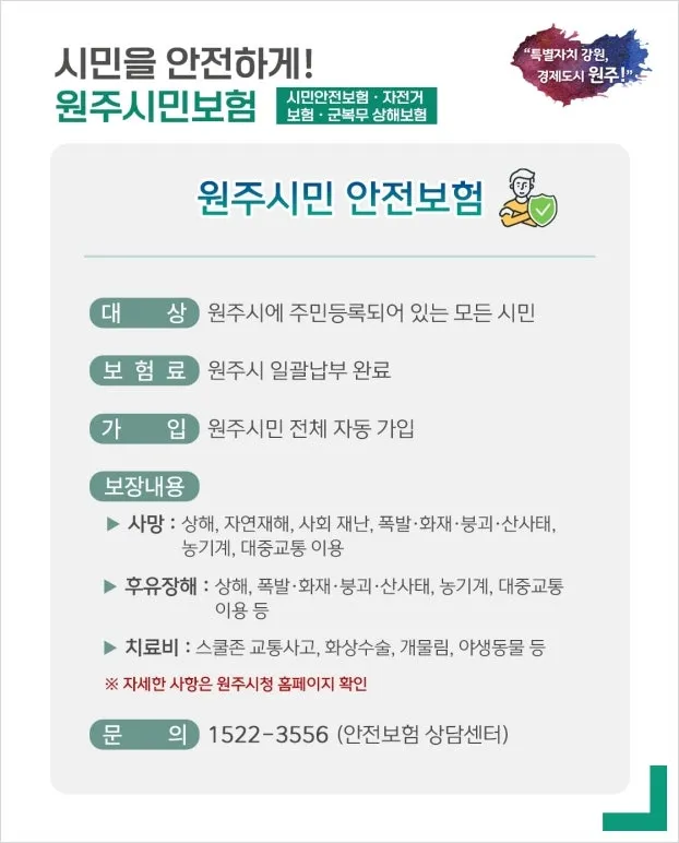 시민을 안전하게! 원주시민보험을 알아볼까요?