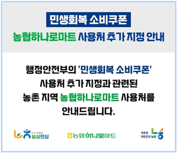 농협 하나로마트와 로컬푸드 직매장 사용처를 확대한다고 밝혔다.