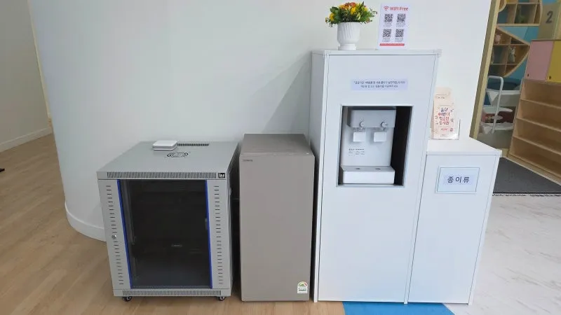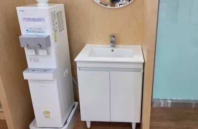 1,2층 모두 정수기와 세면대가 위치해 있어 언제든지 물을 마시거나 손을 씻을 수 있는데요.