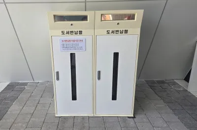 도서 반납함은 도서관 입구와 건물 외부에 마련되어 있는데요. 운영시간이 끝난 뒤에도 자유롭게 도서를 반납할 수 있답니다.