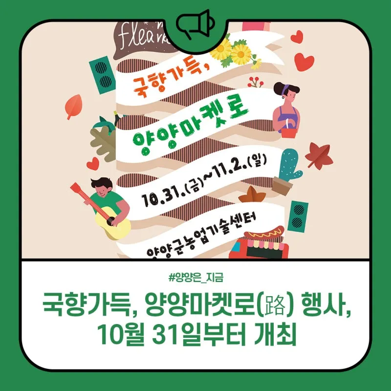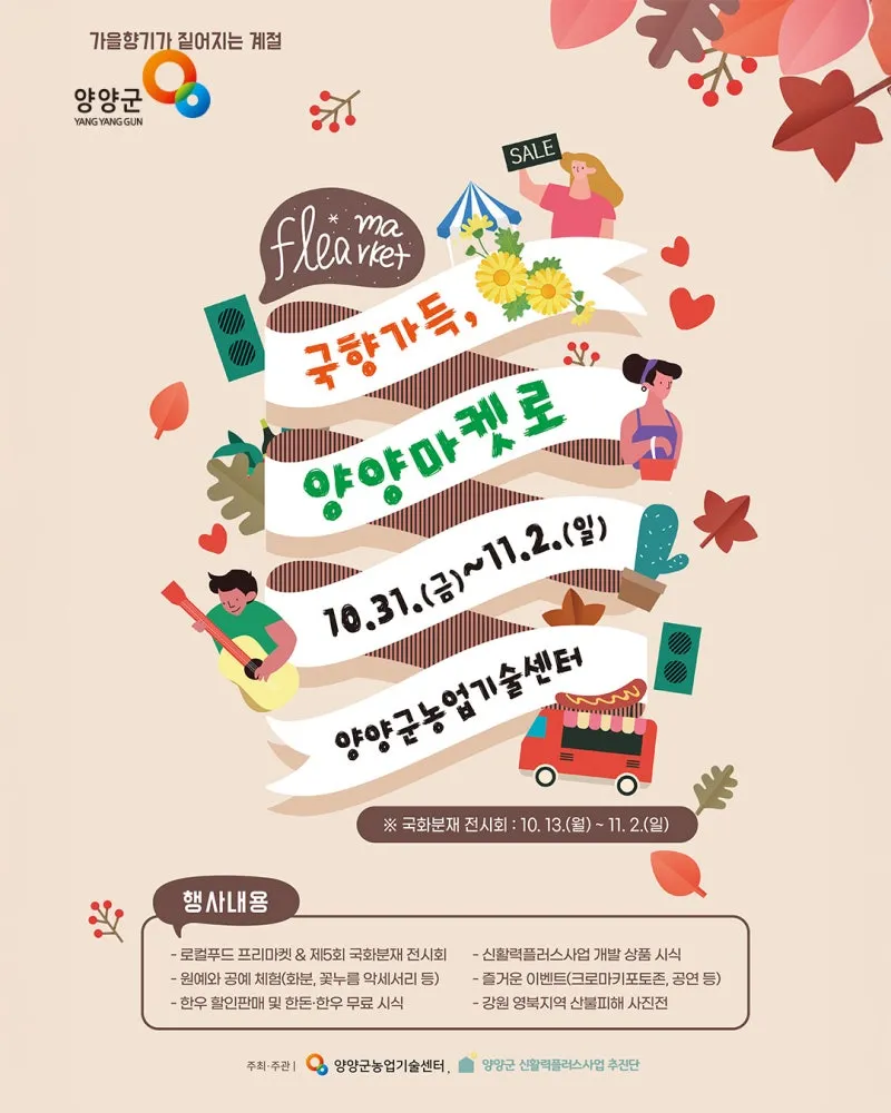 양양군이 후원하는 ‘국향가득, 양양마켓로(路)’ 행사가 오는 10월 31일부터 11월 2일까지 3일간,