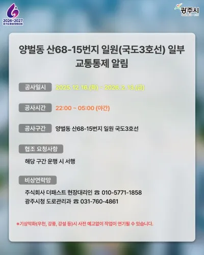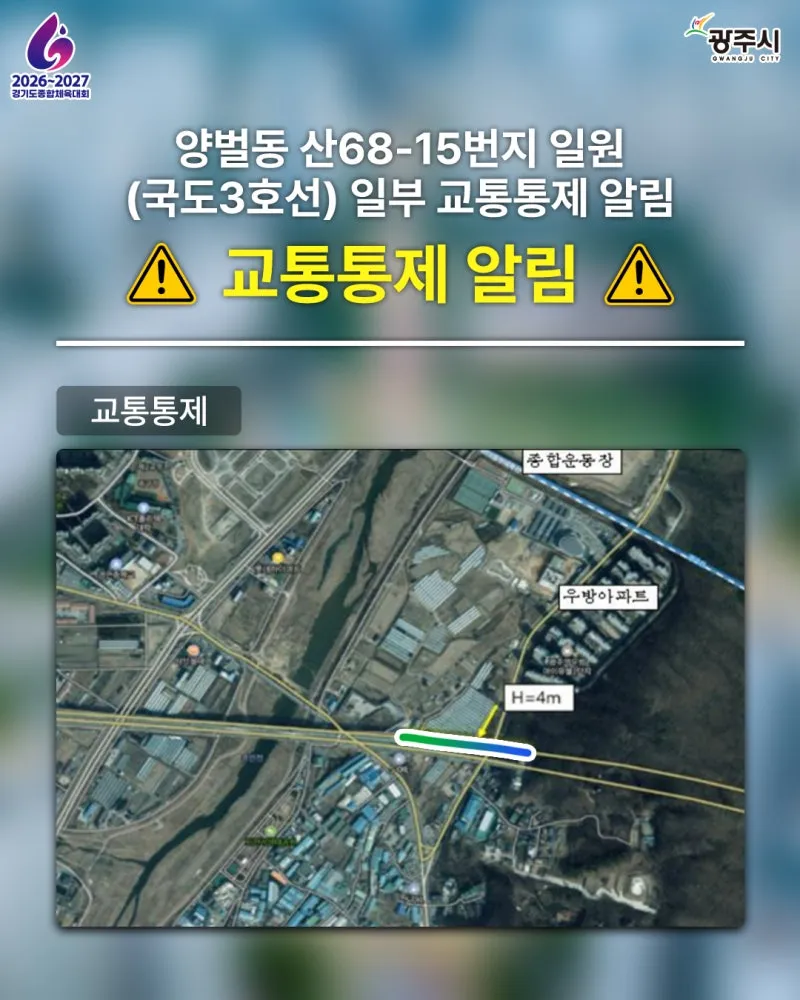양벌동 산68-15번지 일원(국도3호선) 일부 교통통제 알림