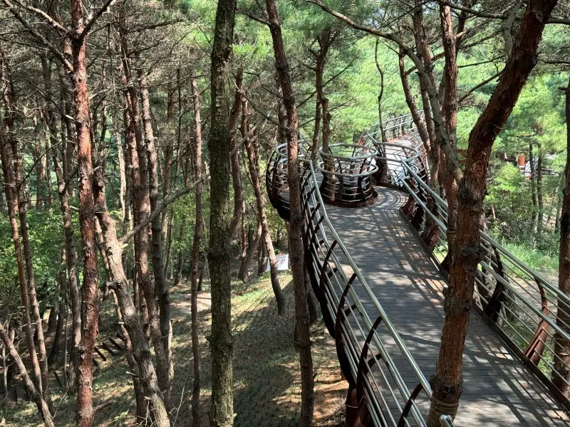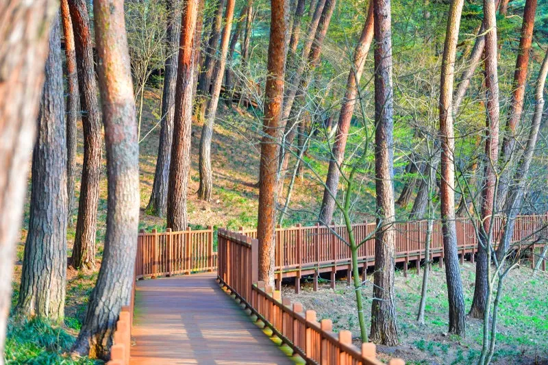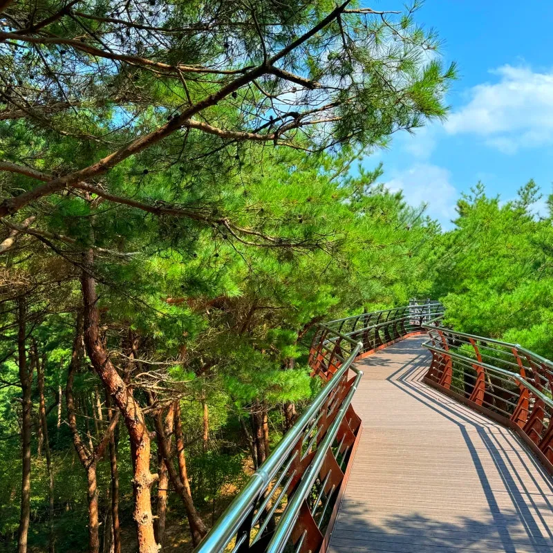 충청도여행을 떠나신다면 안면도자연휴양림을 꼭 방문하셔야 하는데요. 바로 이렇게 나무 데크길로 조성된 등산로가 따라가다 보면 멋들어진 소나무들과 향긋한 솔향기를 느낄 수 있습니다. 등산로 자체가 완만하다 보니 등산 코스로도 제격입니다. 완만한 등산과 함께하는 충청도여행을 생각 중이시라면 꼭 안면도자연휴양림을 방문하시길 바랍니다.