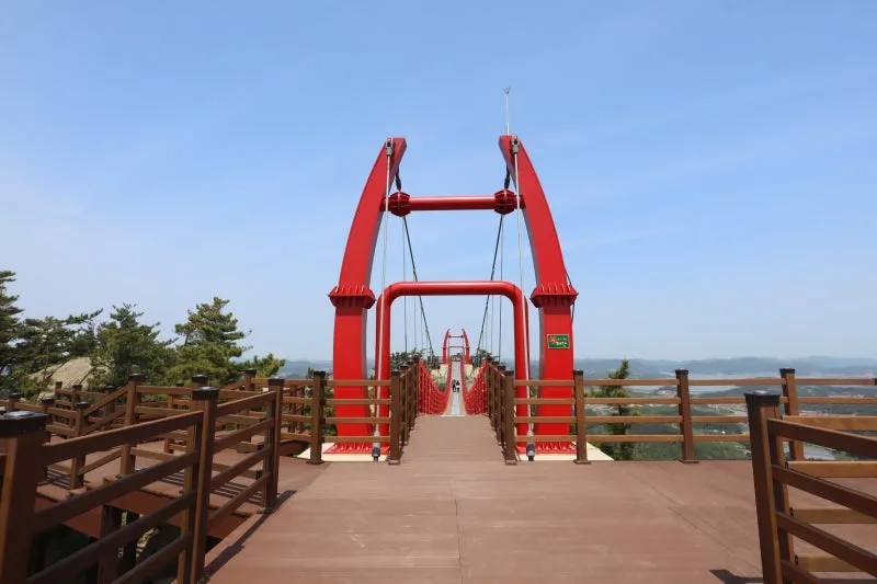 등산의 묘미는 또 출렁다리 아닐까요? 백화산에도 보기만 해도 아찔한 출렁다리가 있습니다. 백화산 출렁다리 일명 '구름다리'는 충청도여행의 메카로 충청도여행을 하시는 분들에겐 꼭 방문하시는 명소이기도 합니다. 구름다리의 모습은 색감이 짙은 빨간색으로 멋진 자연경관과 굉장히 잘 어울립니다.
