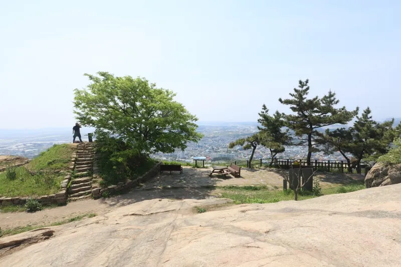 이렇게 조금 가파른 등산로 구간에는 옆에 나무 벤치가 있어서 중간중간 휴식을 취하며 멋들어진 소나무들을 감상하실 수 있습니다. 힐링의 등산 코스에서 피톤치드를 흠뻑 맡으며 걸어간다면 정말 기분이 좋아집니다.