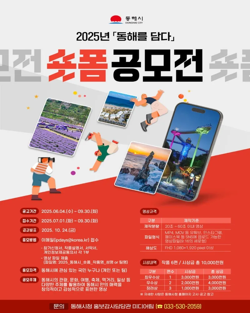 동해시 숏폼 공모전「동해를 담다」 2025년 9월 30일 마감
