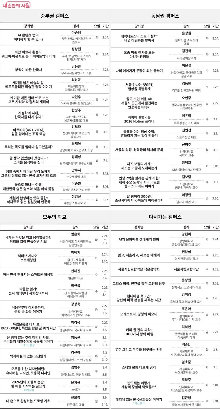 인문·과학·글쓰기까지 무료! 서울시민대학 계절학기 2월 5일(목)부터 선착순 수강신청