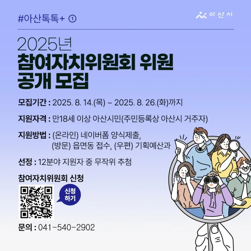 지원자격: 만18세 이상 아산시민(주민등록상 아산시 거주자)