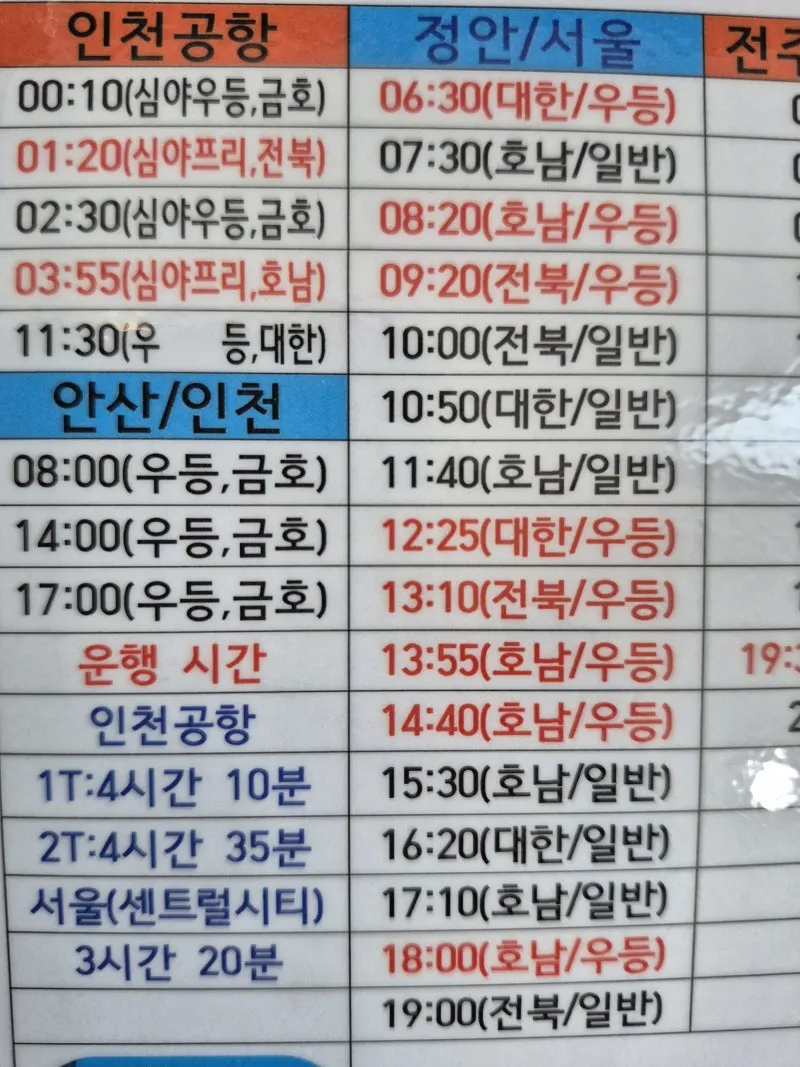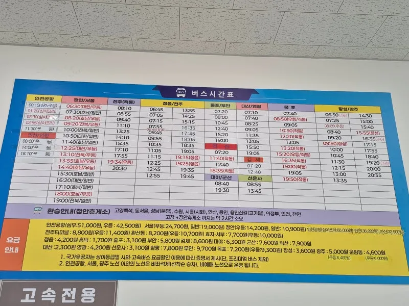 고창발 서울 센트럴시티행은 6:30 첫차를 시작으로