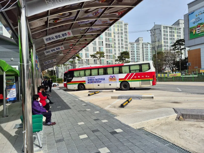 현재 임시터미널은 하나로마트와 목화 예식장 사이에 있어요.
