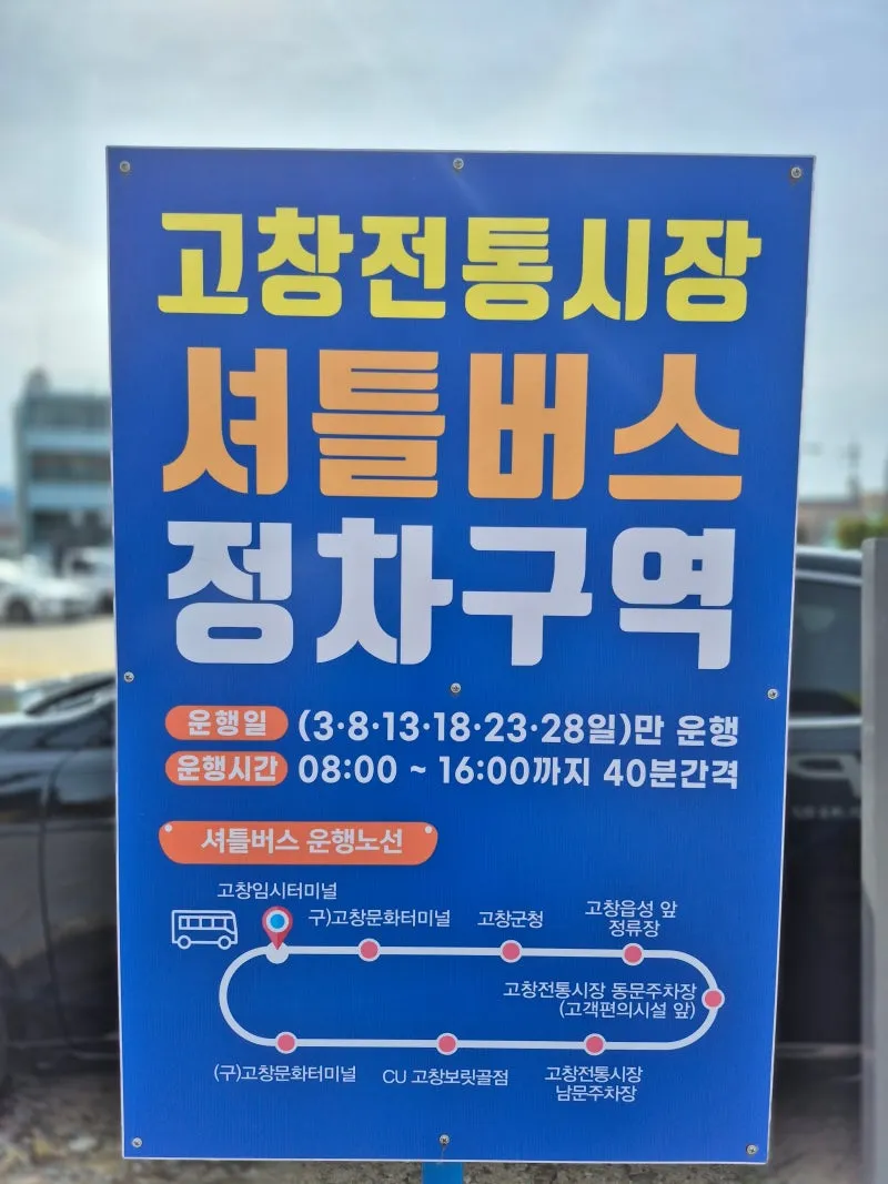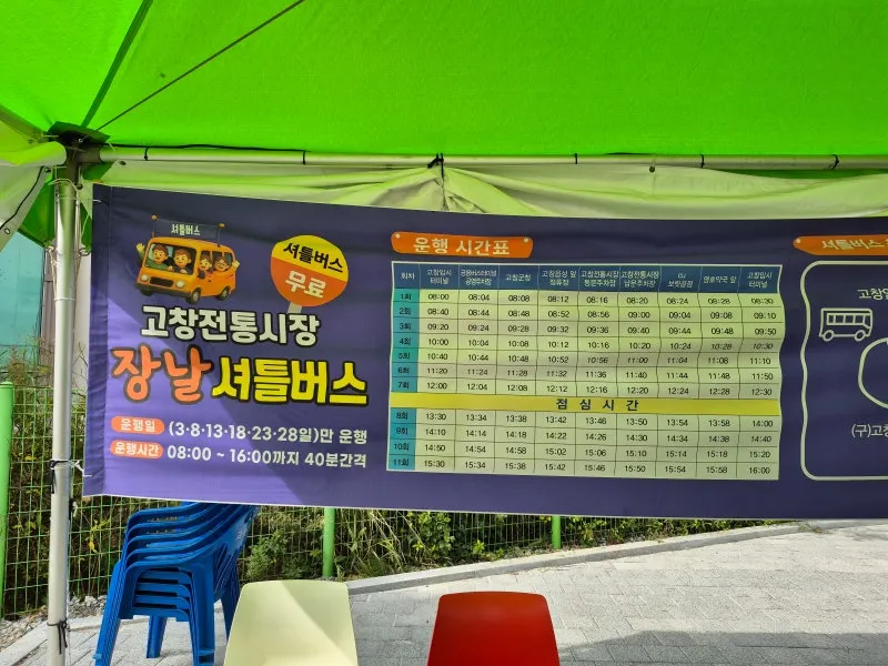 고창전통시장 셔틀버스가 함께 운행 중입니다.