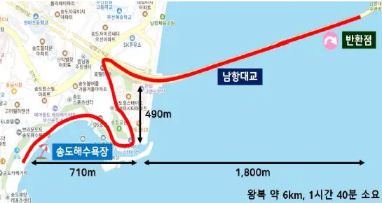 📍 걷기코스: 송도해수욕장 ↔ 남항대교 끝 지점(약 6km)