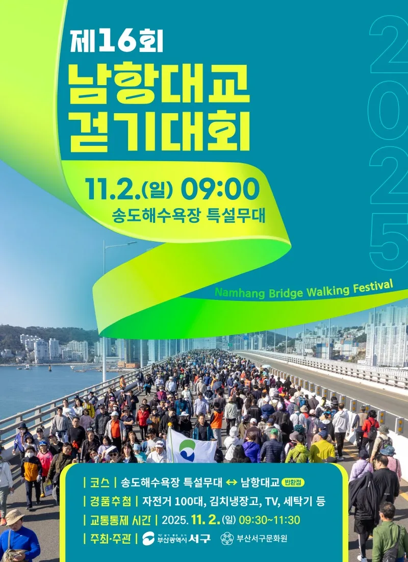 🚶♂️제16회 남항대교 걷기대회(11.2. 9:00)/ 송도해수욕장 ↔ 남항대교 🌉
