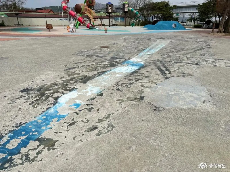 아이들이 좋아하는 놀이터도 있어 발걸음을 옮겨봤는데 바닥에 그려져 있던 트릭아트 그림들이 다 벗겨진게 미관상 좋지 않더라구요. 따뜻한 봄날 아이들이 방문하기 전에 미리 보수작업을 진행했으면 좋았을텐데 아쉬웠어요.