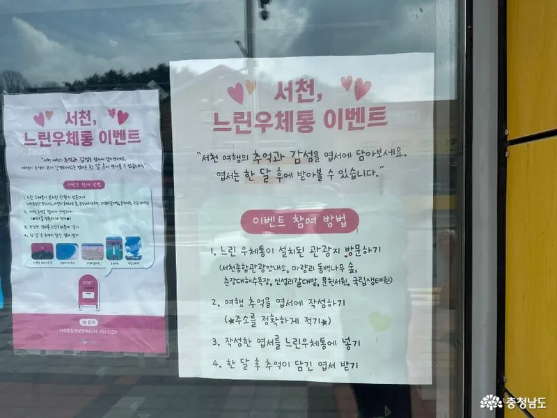 금강하구둑 입구에는 서천군관광 안내소가 위치하고 있어 다양한 서천지역의 관광정보를 확인할 수 있으며, 느린우체통 이벤트도 하고 있으니 참여해보시는것도 좋겠죠?