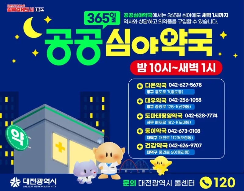 새벽 1시까지 영업하는 약국, 2026년 대전 《공공심야 약국》 현황 안내