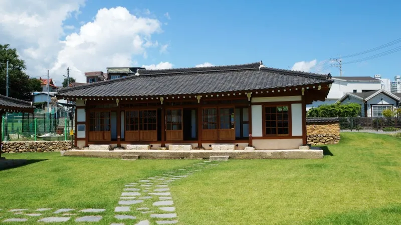 정원을 중심으로 ㄱ자 형체로 구성된 안채와 아래체로 구성된 기장근대역사관