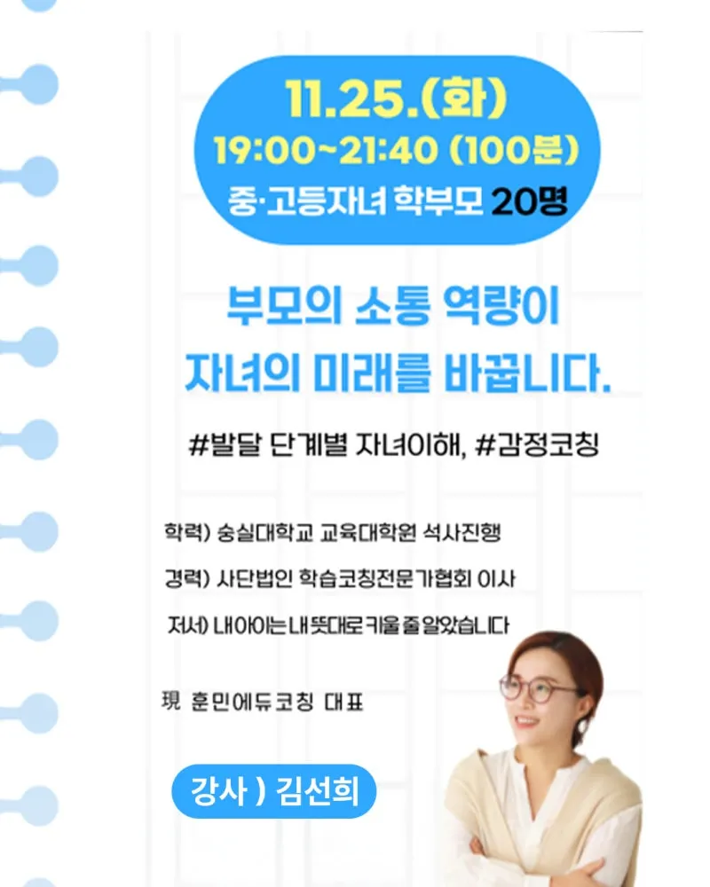 발달단계별 청소년 자녀이해 및 감정코칭을 위한 <청소년 학부모 명사특강>