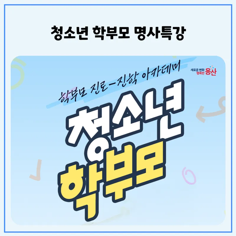 - 대상: 용산구 거주 또는 관내 중·고등학생 자녀를 둔 학부모 20명