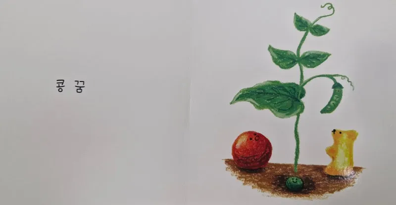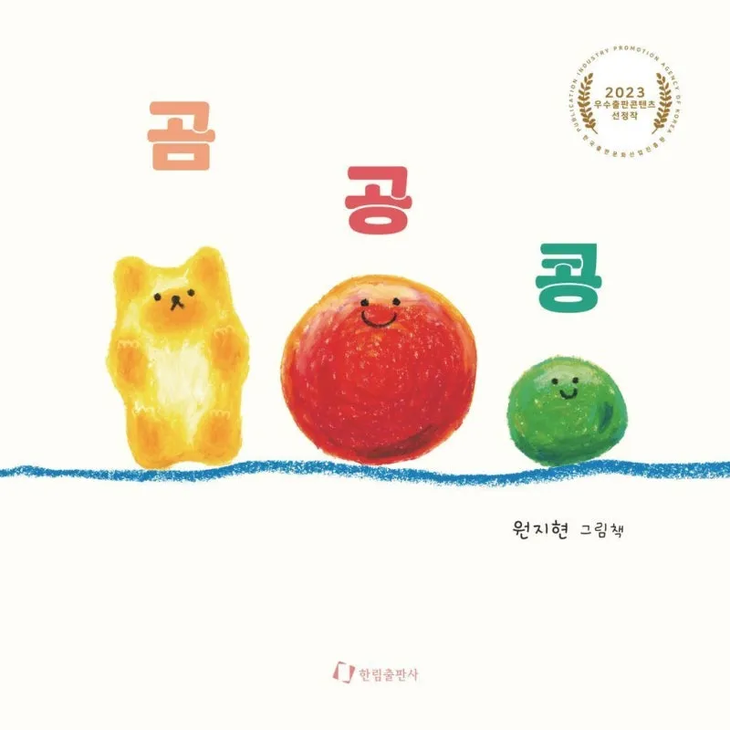 5. '곰 공 콩'은 말놀이 그림책이에요. 2023년 우수출판콘텐츠 선정작이기도 하고요. 'ㄱ,ㅋ,ㄲ' 첫소리인 단어들과 재미난 상상으로 이루어진 이야기에 귀여운 그림까지 너무 사랑스러운 그림책이에요.
