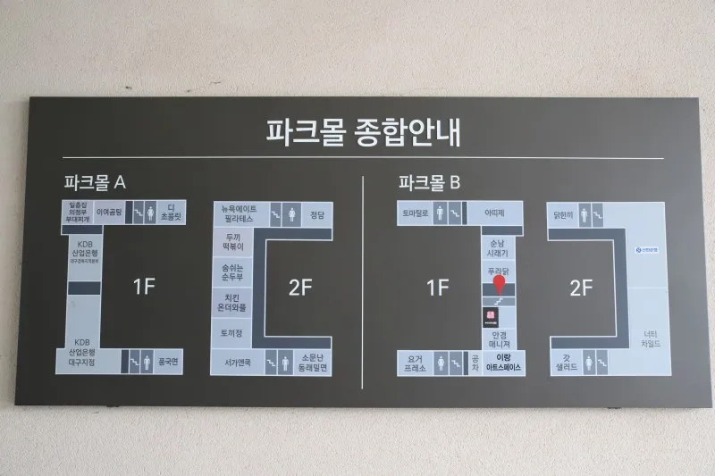 이곳에는 식당과 카페, 은행, 안경, 키즈카페 등 다양하게 입점해 있어요.