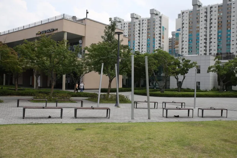 복합문화공간답게 시민들의 휴식 공간들이 곳곳에 마련되어 있어요. 곳곳에 벤치들이 설치되어 있어요.
