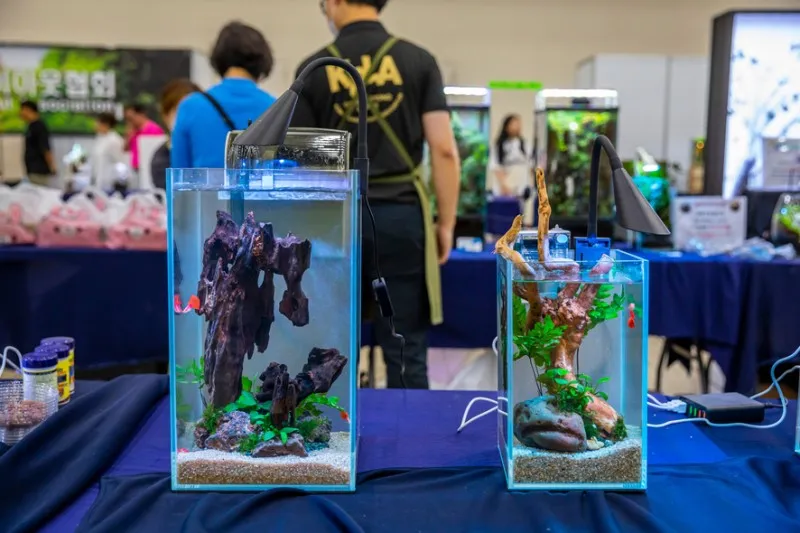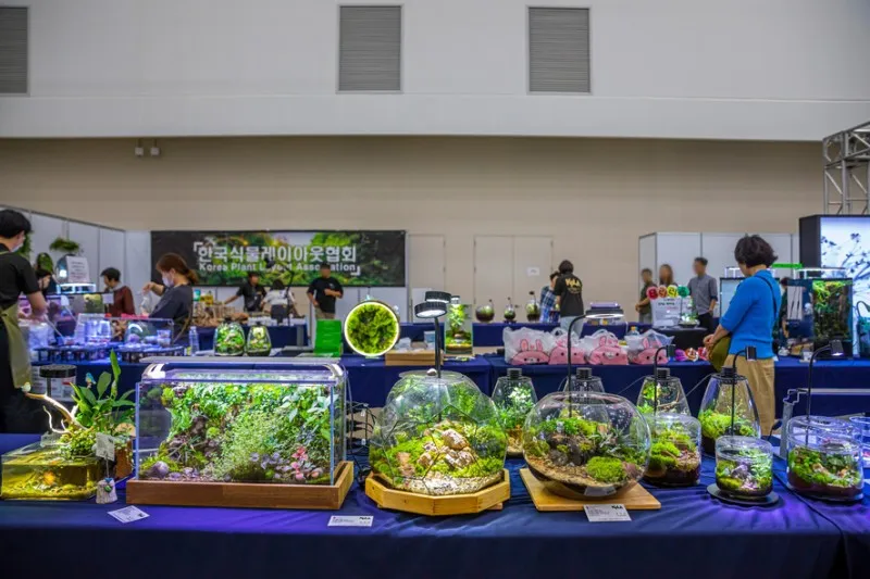 가장 눈길을 끌었던 곳은 테라리엄을 전시하고 판매하는 부스였습니다. 테라리엄은 주로 식물류의 생물을 키울 목적으로 유리장 안에 식물을 넣는 것으로 식물 생태계를 작은 공간 안에 만들어 놓는 것입니다.