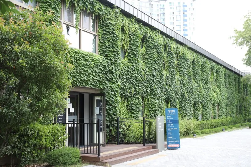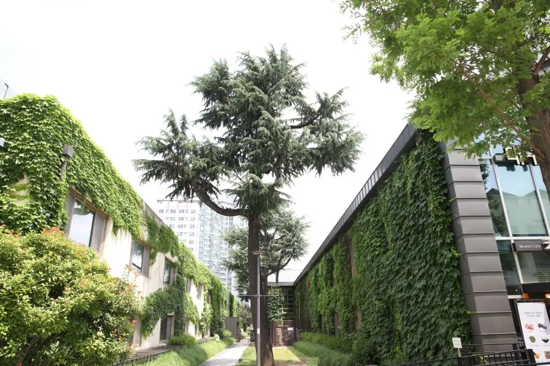 건물 전체를 담쟁이가 뒤덮어서 너무 멋있었어요.