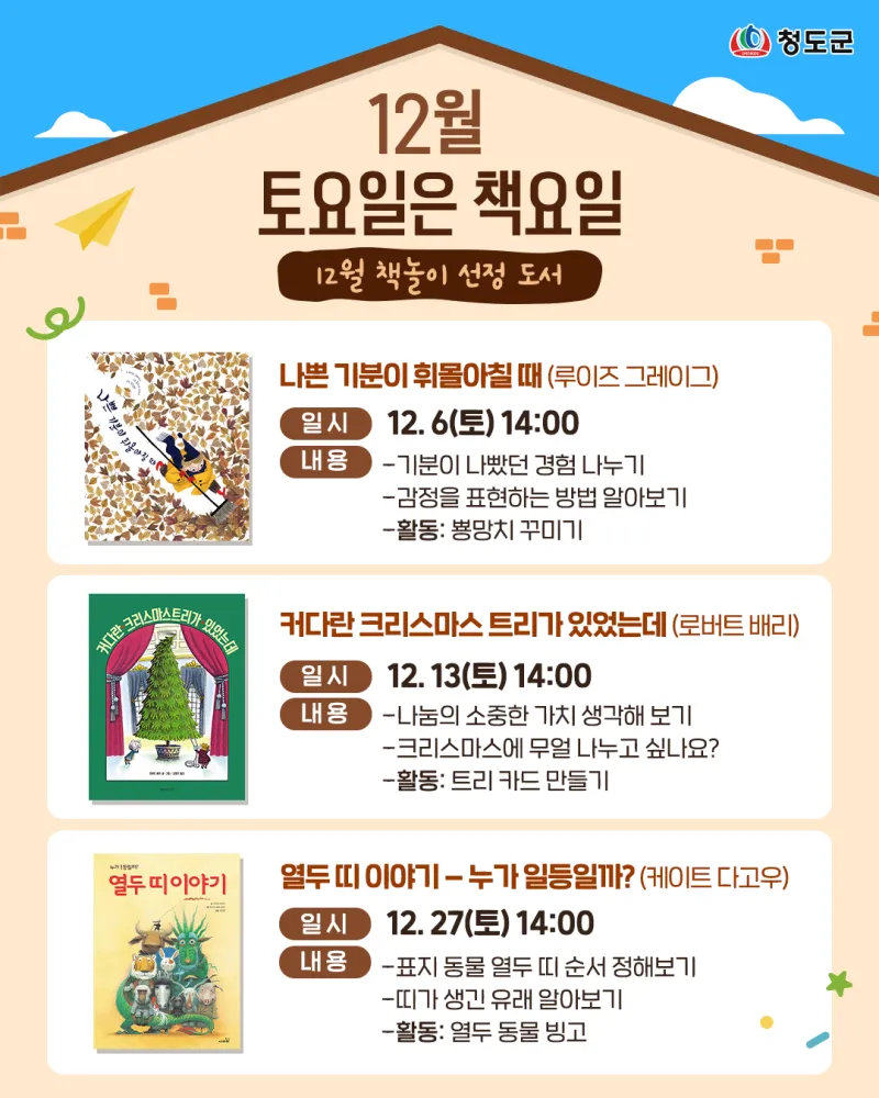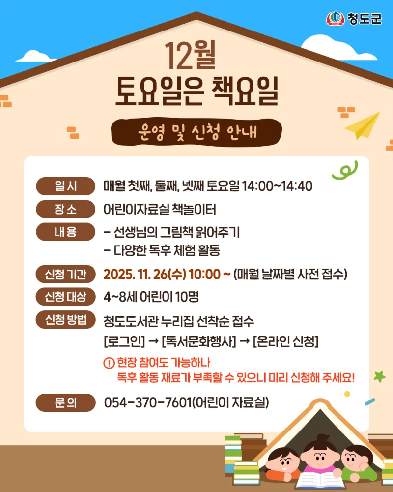 도서관행사 청도도서관 ’12월 토요일은 책요일’ 신청 안내