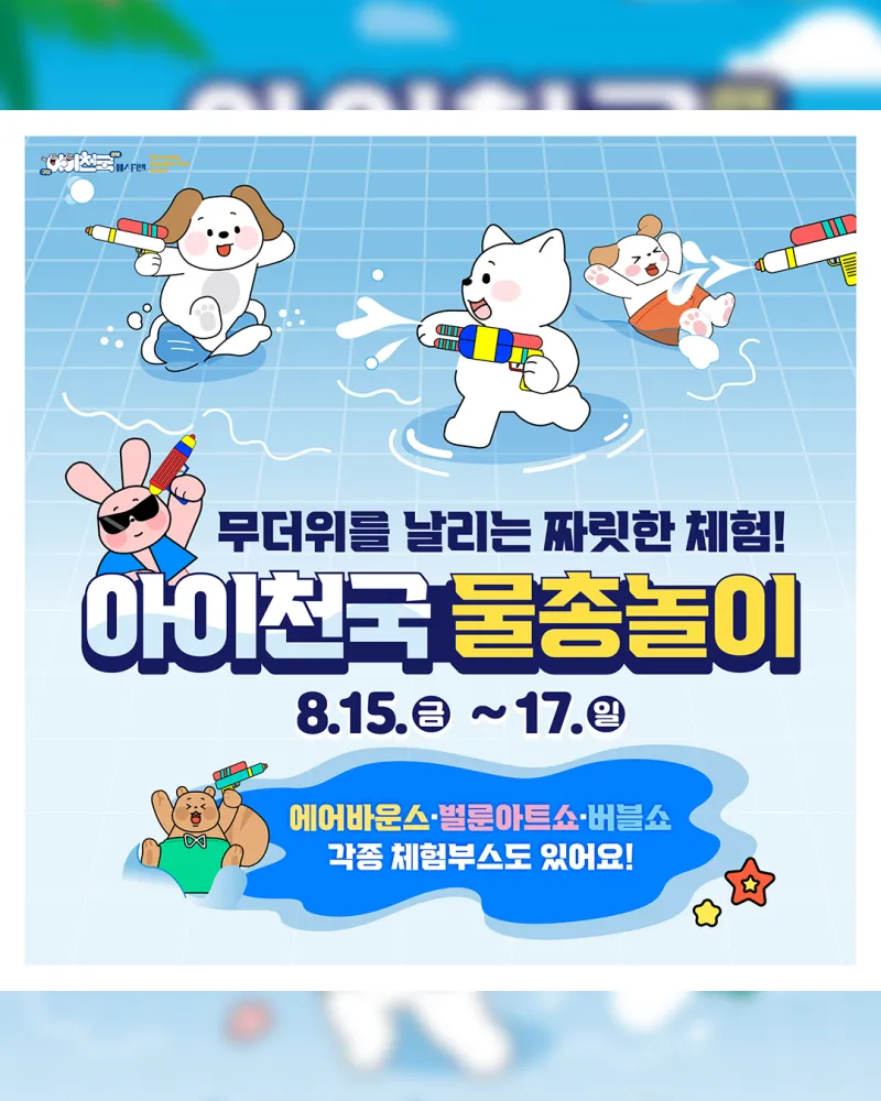✅내용 : 어린이 캐릭터 공연(캐리와 친구들 싱어롱쇼), 물총놀이 체험존, 마술공연, 각종 체험부스 등 운영
