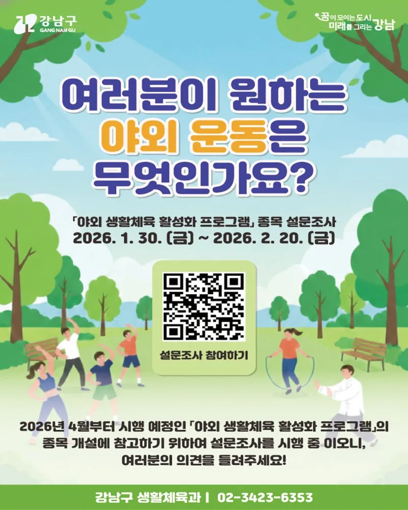 ‘야외 생활체육 활성화 프로그램’ 설문조사에 참여해 주세요!