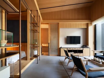 이 객실은 거실, 노천탕, 현관이 3Bay 구조로
