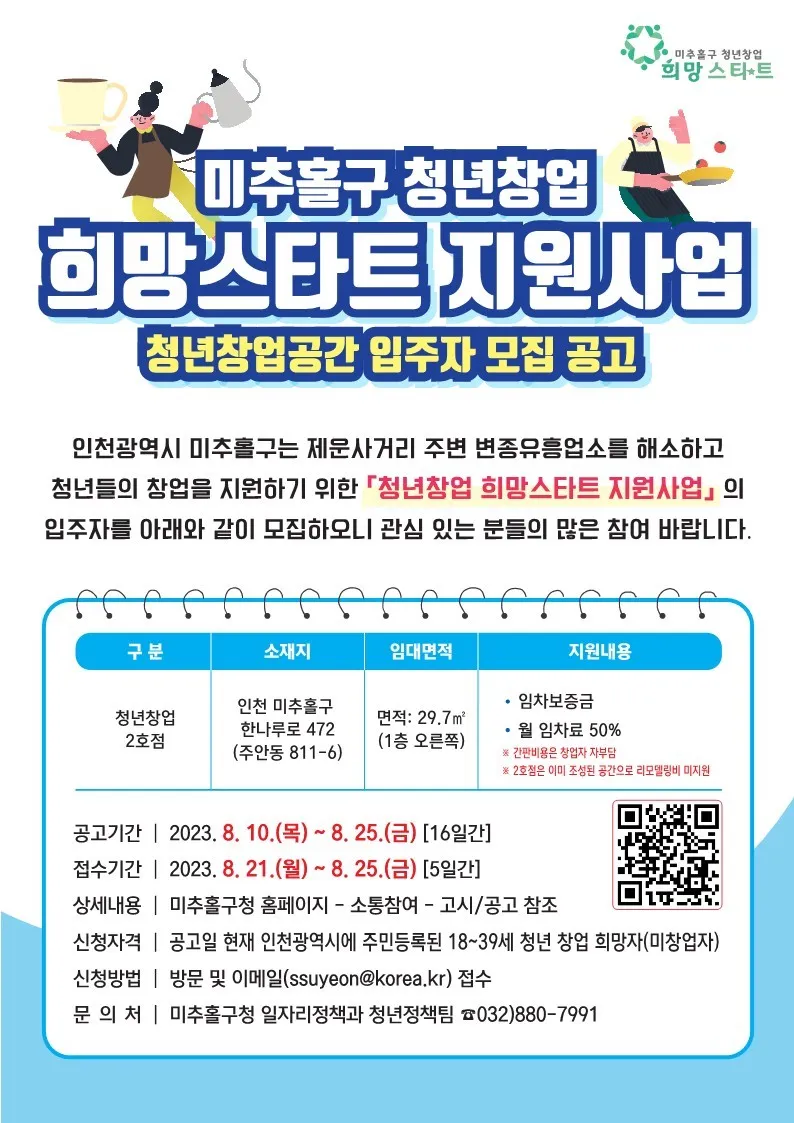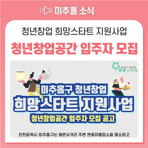 #미추홀 #미추홀소식 #청년창업 #미추홀구청년창업희망스마트지원사업 #청년창업공간입주자모집