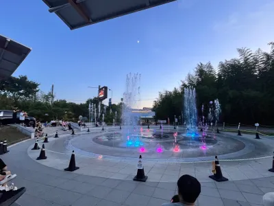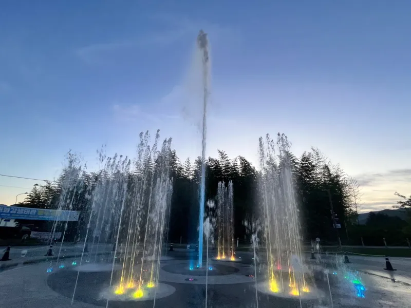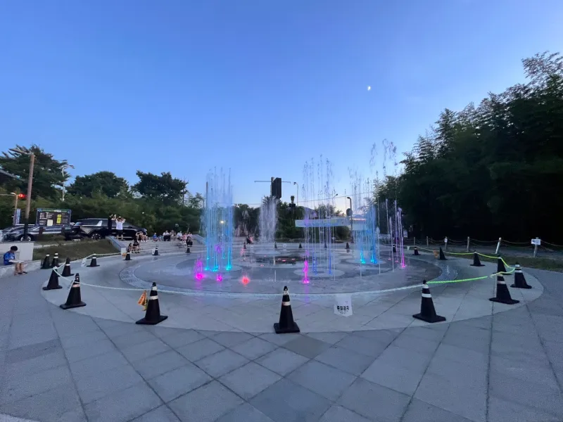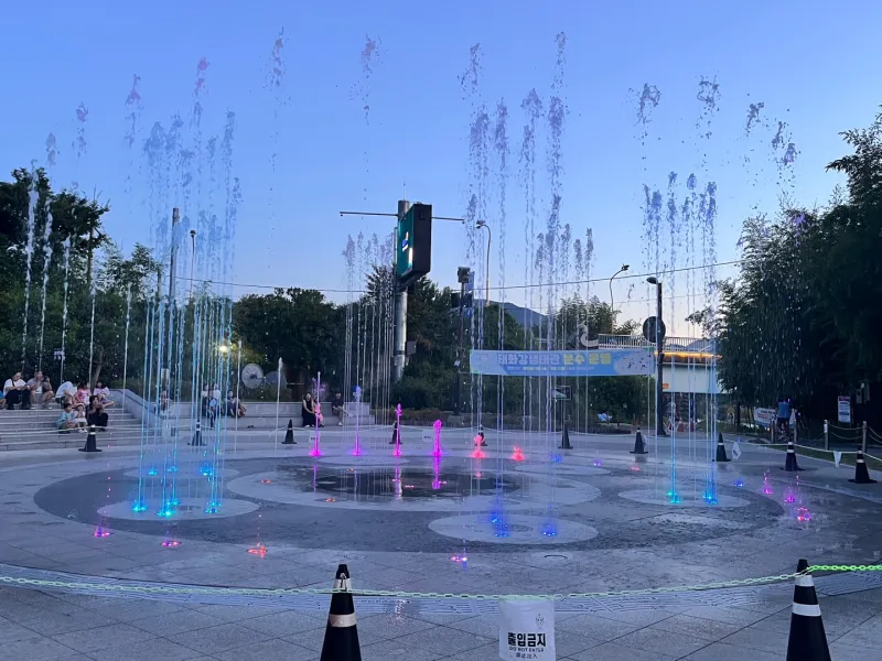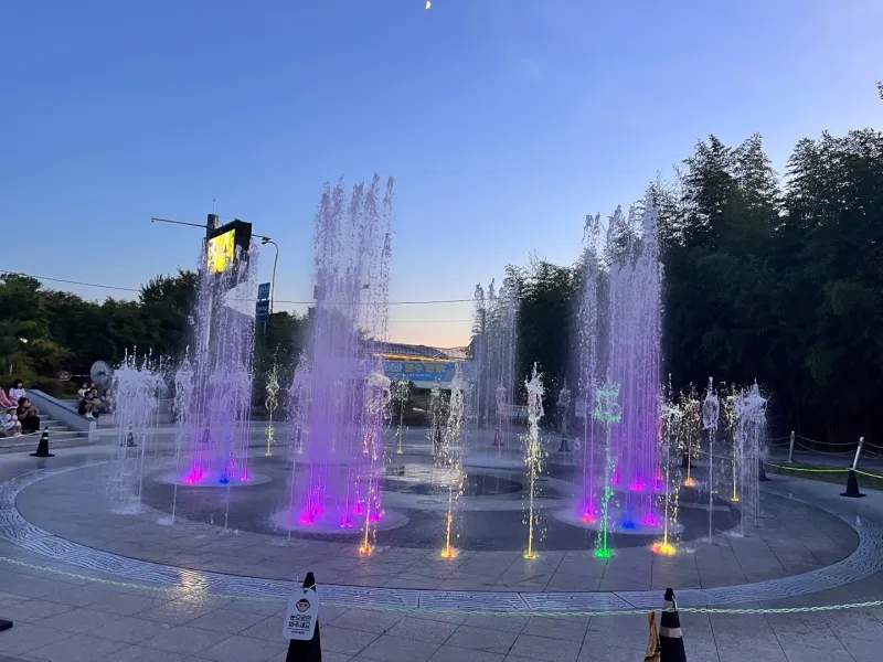 음악이 시작되면 중앙에서 높이 솟구치는 물줄기가 노래에 맞춰 춤을 추듯 움직이고, 조명까지 더해져서 정말 환상적이에요.