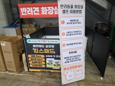 더욱 놀랐던 건, 펫쇼 코리아에 방문한 사람들과 반려동물들을 위해 마련된 시설들이었습니다. 가장 먼저 눈에 띈 건, 입구에 있던 반려동물 화장실이었는데요. 다른 사람들의 시선을 막아줄 부스가 마련되어 있어, 프라이버시도 지킬 수 있을 것 같습니다. 또한 택배 접수처가 마련되어 있어, 많은 상품을 구매하여도 집에 돌아갈 때 굳이 무거운 짐을 들고 이동할 필요가 없게 만들었습니다.