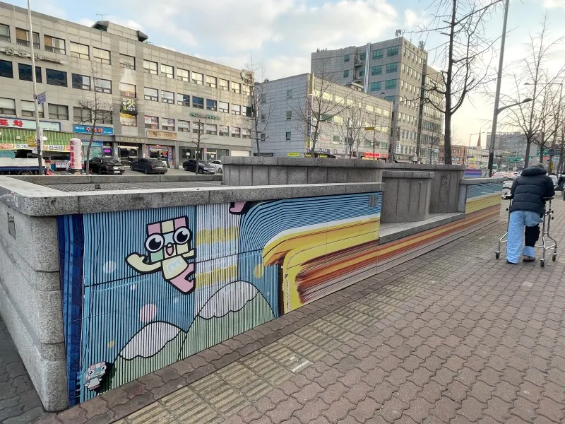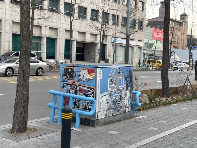 낙서와 불법 광고물이 더해져 미관상 좋지 않았던 공공시설물이 줄지어 있는 곳입니다.