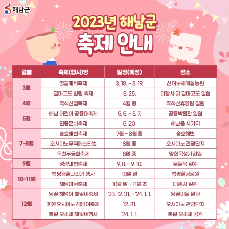 2023년 해남과 함께 행복한 축제 즐겨보세요!