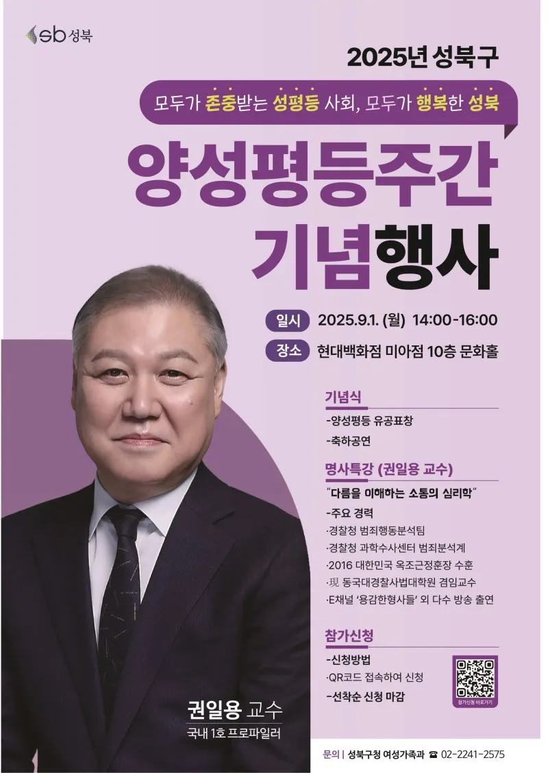 2025년 성북구 양성평등주간 기념행사(feat.권일용 교수)