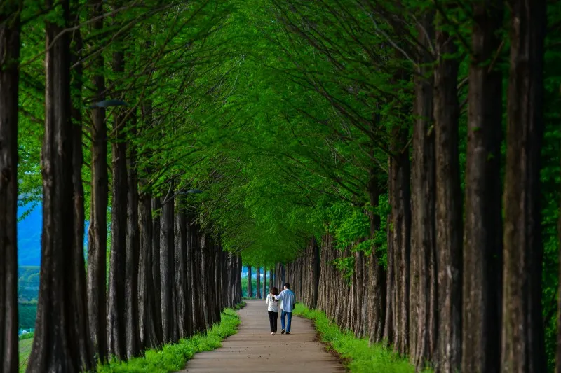 여행에 진심인 푸른하늘여행입니다. 이제 몇일만 있으면 5월이 시작됩니다. 5월이야말로 여행 떠나기 가장 좋은 계절입니다. 어린이날에 석가탄신일까지 공휴일도 많아서 연휴기간에 공주여행을 떠나 볼까요 벚꽃이 필 때가 엊그제 같은데 어느새 초록초록 합니다. 5월은 공주메타세콰이어길과 철쭉이 예쁘게 핀 중동성당, 특히 자전거축제가 열리는 미르섬을 강추합니다. 3군데 전부 공주시내에 몰려 있어서 당일치기 여행으로도 충분히 가능하니 더 좋은 여행이 될 겁니다. 오늘의 대문사진은 메타세콰이어길입니다. 지금 가면 이렇게 초록의 모습을 볼 수 있습니다. 이렇게 예쁜 곳이니 가족이 함께 가도 좋지만 데이트 코스로도 좋은 곳입니다.
