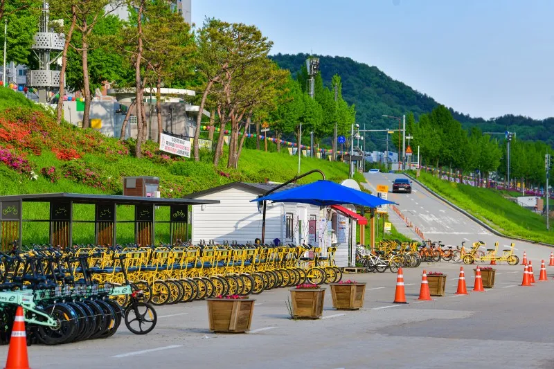 미르섬은 금강신관공원 안에 있다고 보면됩니다. 무엇보다 자전거를 무료로 대여해 주니 이보다 좋을 수 없습니다. 그래서 그런지 자전거 축제가 금강신관공원에서 열리나 봅니다.