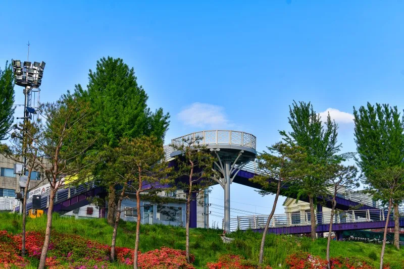 자전거 대여소 위에 보면 육교가 있는데 여기에 별도로 전망대를 만들었습니다. 여기에 올라가면 공원 전체를 볼 수 있습니다.