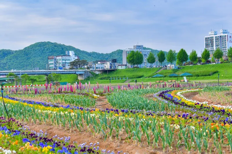 개인적으로는 공산성이 배경이 되어 주는 미르섬의 꽃밭을 좋아합니다.