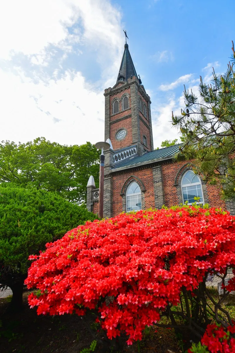 성당의 모습을 철쭉과 함께 담아 보았습니다. 오래된 분위기 있는 건물이라 성당 만으로도 멋진데 철쭉과 함께 담으니 예뻐서 기분까지 좋아집니다.
