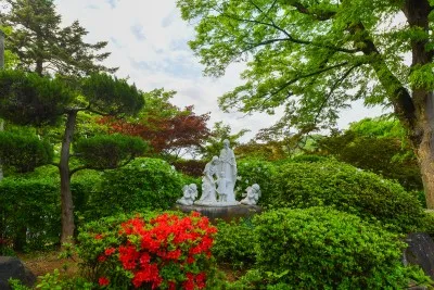 성모마리아와 예수님 천사들까지 전부 출연한 동상은 미소 짓게 만들고 성모마리아상만 있는 경건하게 만듭니다.
