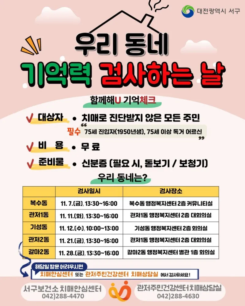 #대전 #대전광역시 #대전서구 #서구청 #치매 #기억력 #검사 #치매검사 #서구치매안심센터